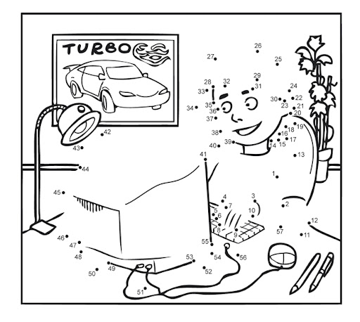 | Połącz liniami numerki od 1 do 57. Potem pomaluj obrazek. Następnie zapisz pod nazwą KOMPUTER w swoim folderze z obrazkami. |