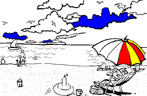 | Pokoloruj obrazek. Pamiętaj o załataniu dziur. Następnie zapisz pod nazwą PLAŻA w swoim folderze z obrazkami. |